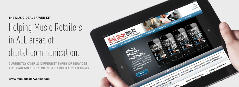 The Music Dealer Web Kit Company specializes in helping music retailers in multiple fields of digital communications. Today, the program offers over 20 different types of services that center around online and mobile platforms.